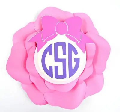 Gluing in the flattened pompom like this now gives you a base for which to glue the monogram or shape of your choosing to the center of the flower. Â