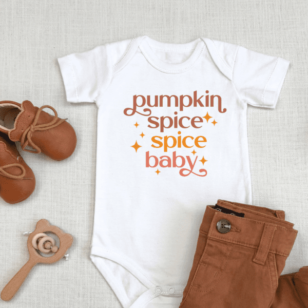 Pumpkin spice baby onesie – oh so cute for your little one to welcome first Fall!