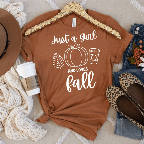 Do you know – or are YOU – a girl who loves Fall? This sweet t-shirt is perfect for the one who does!