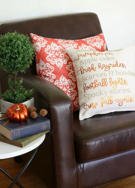 Whatever is your favorite color of autumn – from bronze and orange to rich hues of blue or green – you can create a festive pillow covered with this whimsical fall poem.