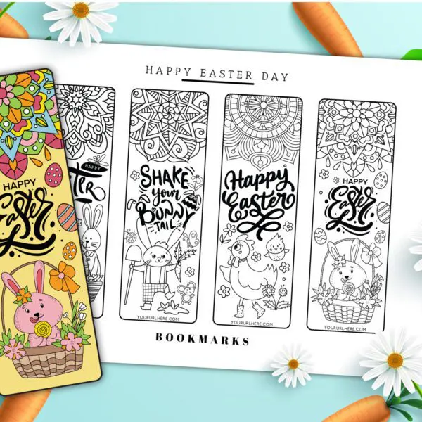Kids will love coloring their own bookmarks with this free set of four printable bookmarks featuring pun-filled easter phrases.