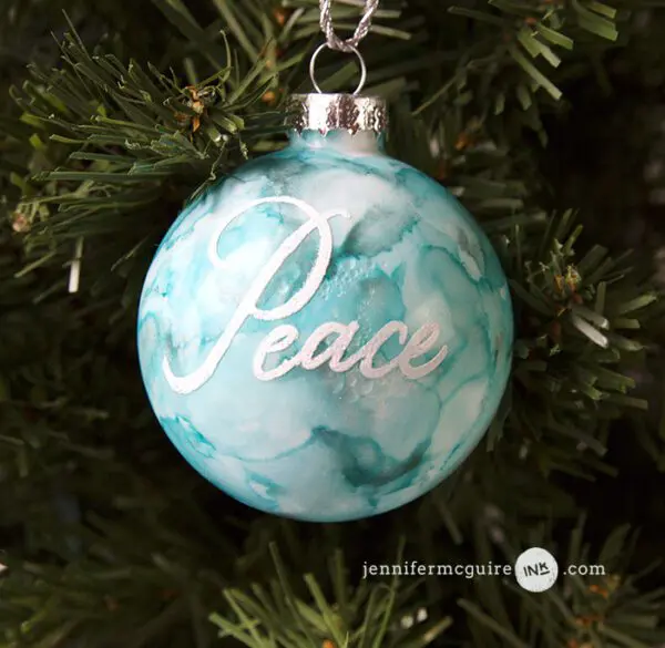 These beautiful ornaments are made with alcohol, ink, and glitter. They’re a beautiful addition to any holiday tree. All you need is clear ornaments, alcohol ink, polyacrylic, and vinyl to make a customized ornament!