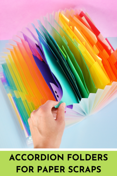 I LOVE this rainbow accordion folder for my paper scrap storage. I can sort by color and easily tuck this away without losing track of my scraps.