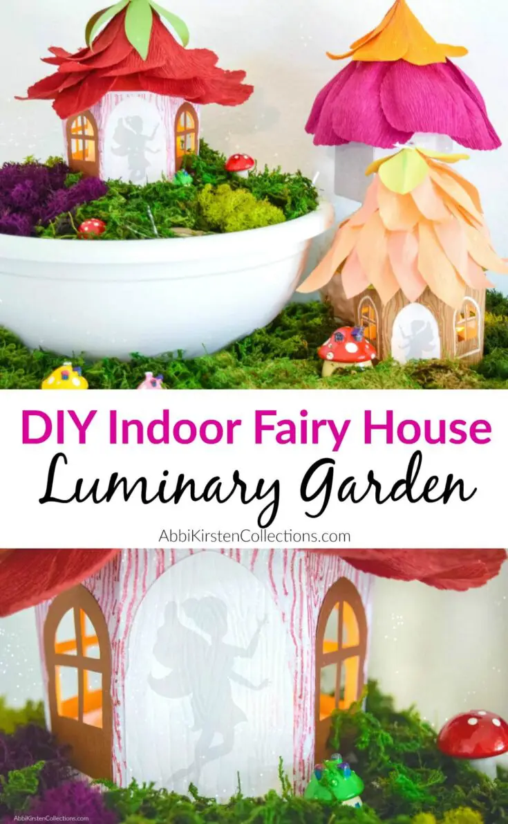Who doesn't love an adorable little fairy house?! Learn how to craft these DIY paper fairy house luminaries with crepe paper flowers for your homemade fair garden.
