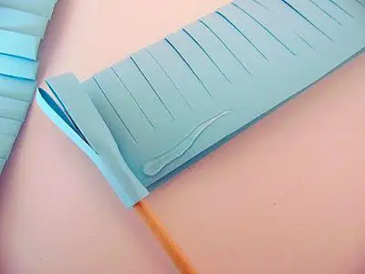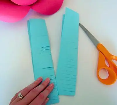 Begin cutting slits all the way down the paper. You can do this with regular scissors and if you want to make the process easier you can always grab this super nifty fringe scissors here!