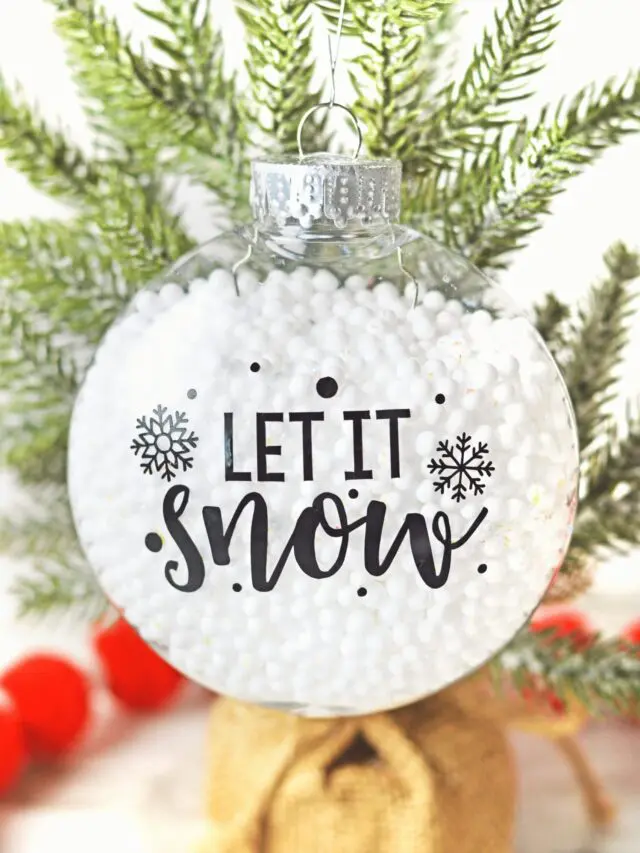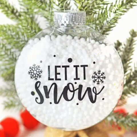 I enjoy coming up with new ideas for making DIY Christmas ornaments every Christmas. The best part about crafting handmade ornaments is you get to create something personalized for your tree. DIY Christmas ornaments also make wonderful gifts that are always well-received. I am sharing an easy way to use fillable Christmas ornaments in this tutorial. Using your Cricut to make ornaments makes it super easy to add little details like this free Let It Snow SVG cut file.