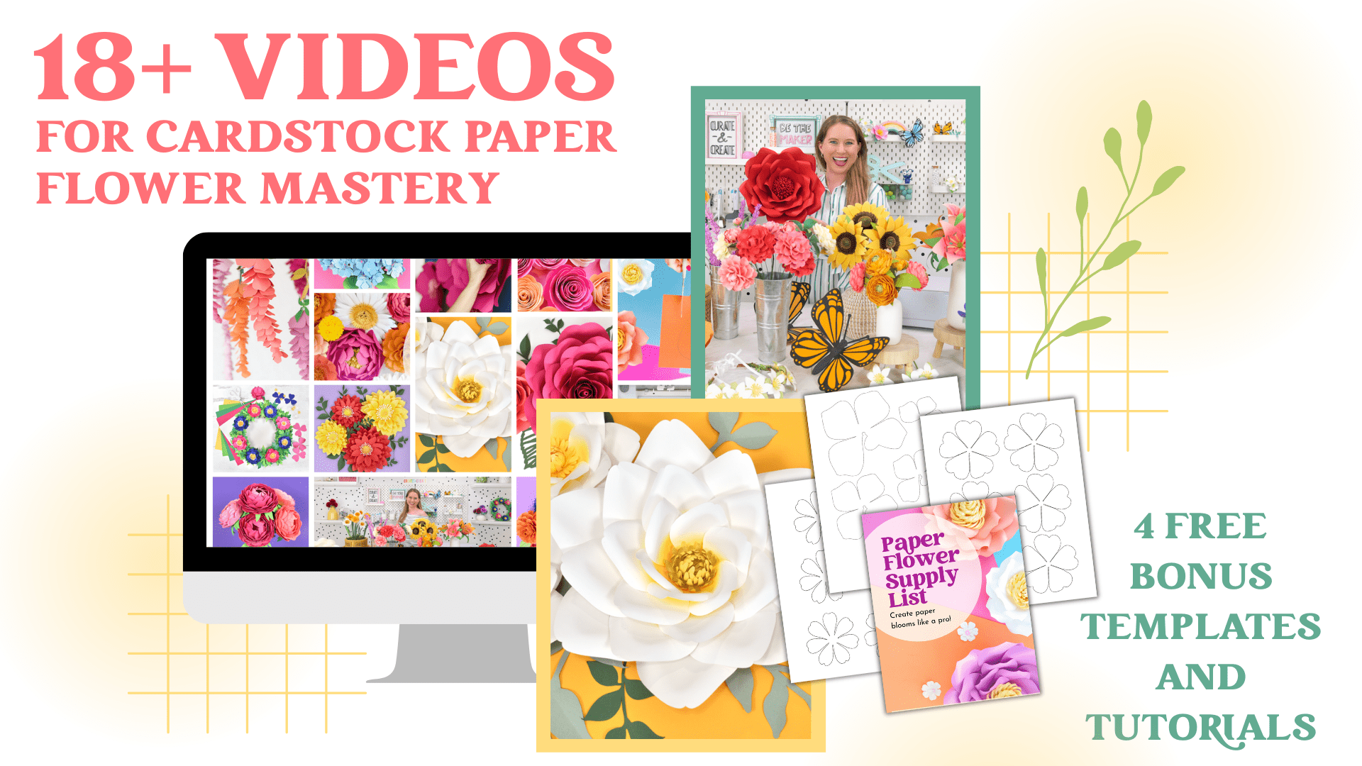- Lifetime access to all 18 cardstock paper flower workshops