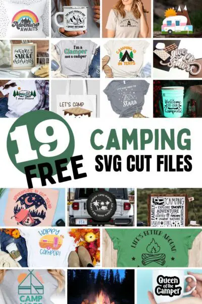 Today I am sharing more than 19 FREE camping SVG files that you can use with your Cricut, Silhouette, or other cutting machines. These free SVG files are perfect for decorating a campsite, camper, or any outdoor space! I’ve also teamed up with several other amazing craft bloggers who have the cutest camping SVG files free for personal use; find them below!