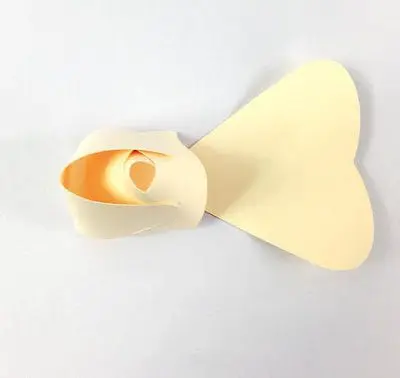 7. Start with one of your center petal cuts and wrap the two petal pieces opposite to each other around one another.Â