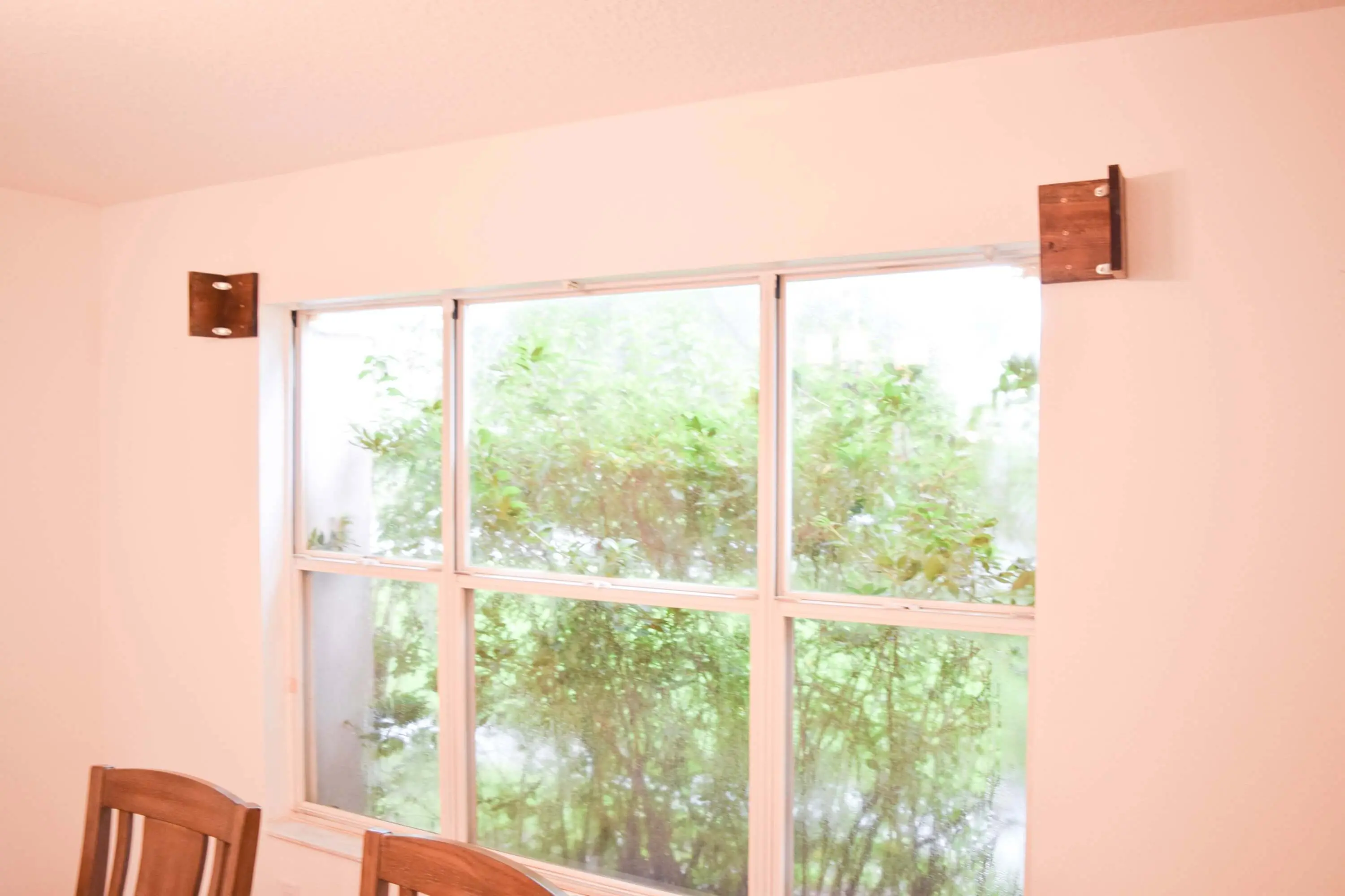 So I chose to use simple curtain brackets, specifically shorter ones because I want my curtains to only be decorative accents to the wood window valances, not close all the way.