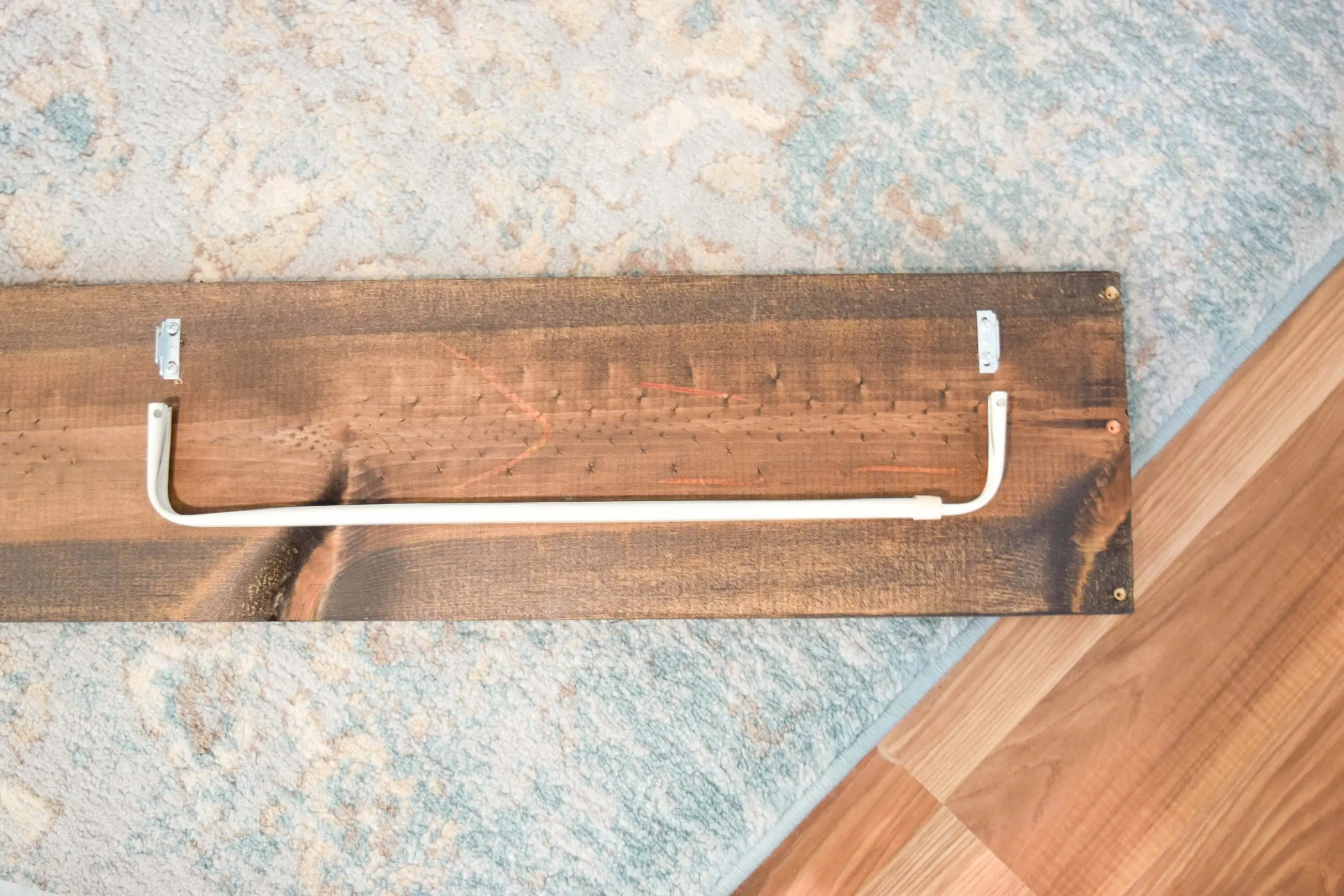 Naturally you would think we are going to attach the long large piece, but we actually are only going to drill pilot holes.