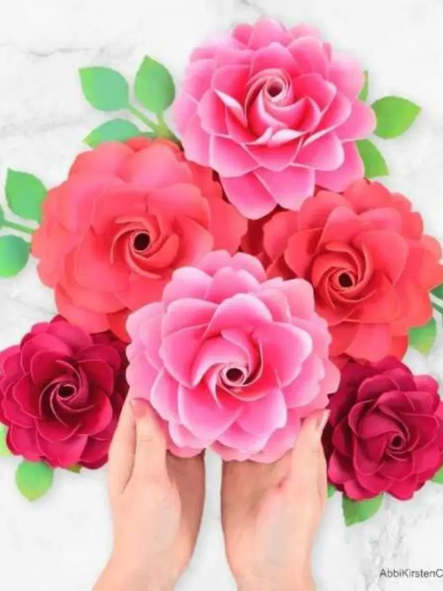 Have you been looking for a step-by-step paper rose tutorial for beginners? This papercraft how-to will show you how to make a stunning full-bloom garden paper rose flower bouquet that is fully stemmed! You can even add supporting leaves! This paper rose is easy enough for any adventurous beginner. I am also a lover of all things Cricut, so you will see me use my Cricut machine, but you can make this everlasting paper rose craft whether you own a cutting machine or just a trusty pair of scissors. The rose templates come in PDF printables for all my crafters for either cutting option.