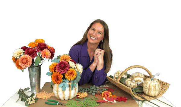 Can’t make it to the live workshop? No problem! You’ll get the full recording so you can learn all my tips and tricks for assembling your handmade flowers into your pumpkin centerpiece.