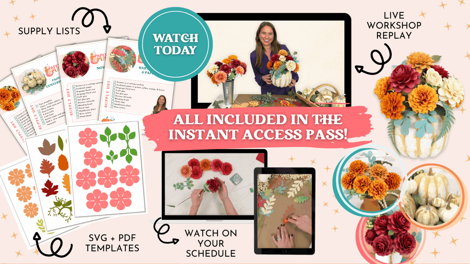 Here’s everything you get with your Paper Petals & Pumpkins Instant Access Pass!