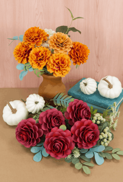 Add the perfect complement to your paper marigolds with lifelike handmade roses.