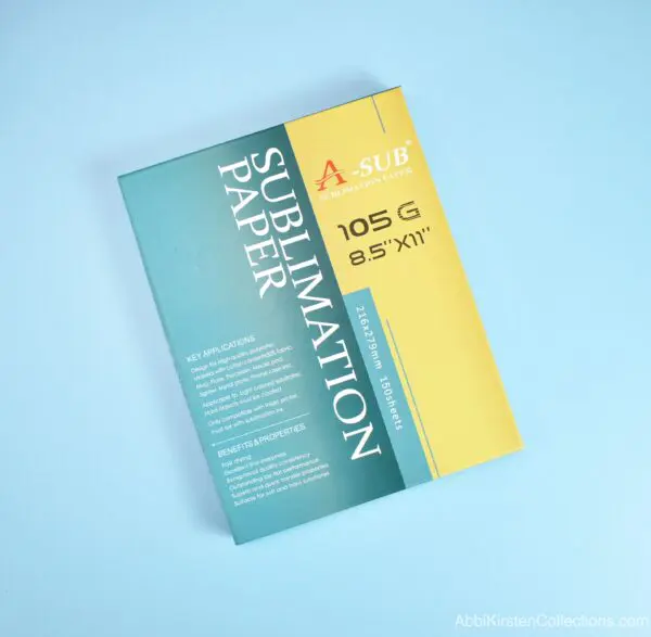 Besides ink transfer paper is one of the most important sublimation supplies to have on hand. There are many sublimation papers to choose from but my favorite sublimation paper to print on is the A-SUB sublimation heat transfer sheets.