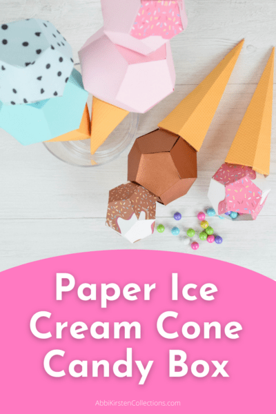 Make a fun 3D papercraft by creating these sugary ice cream favor boxes! This unique ice cream craft, perfect for kid’s parties or just the kid in you, is super easy to create and a great way to share a candy party favor.