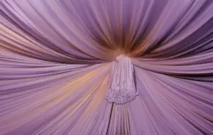You can hang the fabric somewhere near the crib, but not within access of the baby, for safety concerns. Even simply draping fabric to frame the windows is a great alternative to just plain curtains.Â