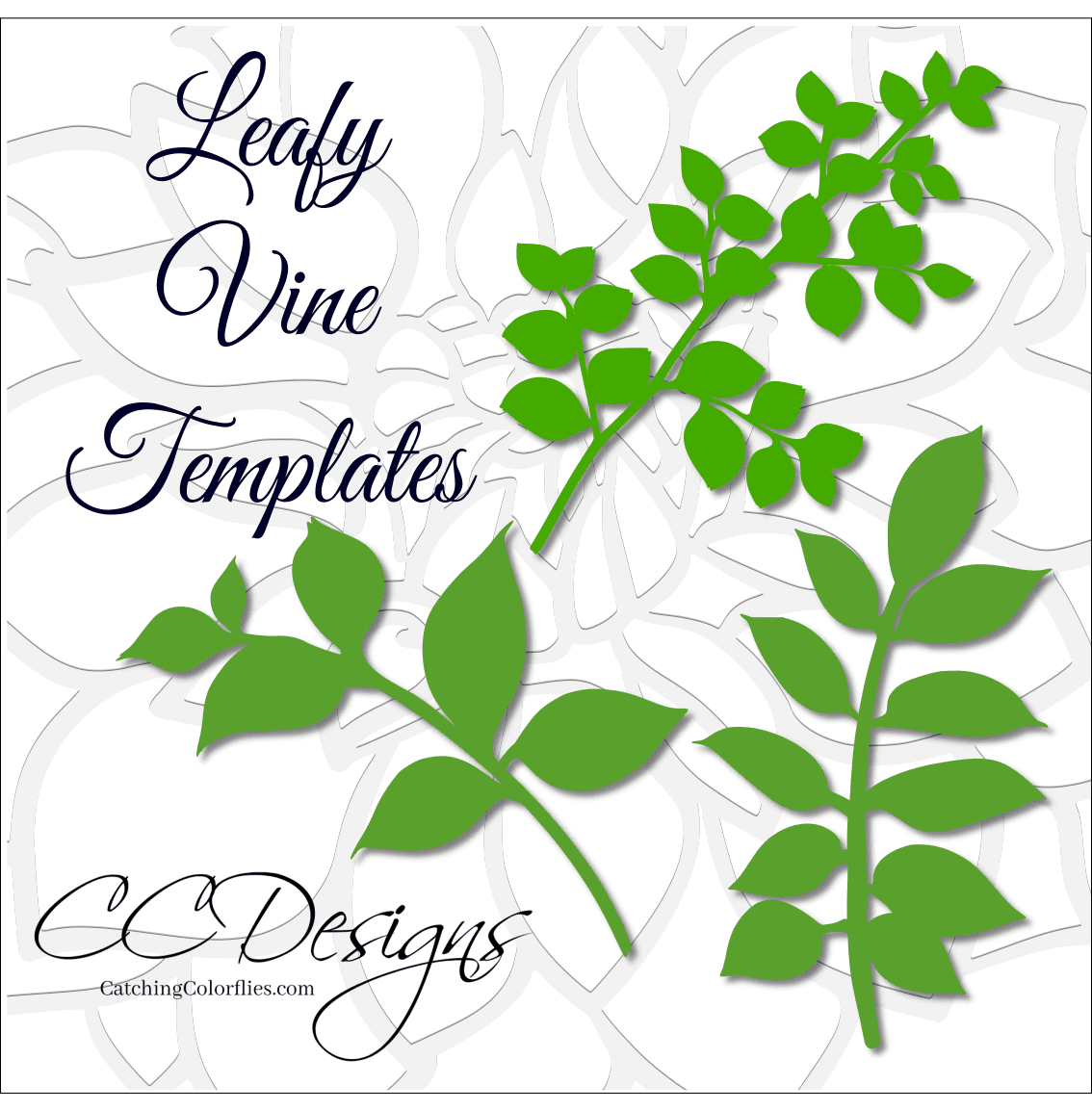 Leafy vine template set. This one is the design I use to teach you how to do the vine veining in the video below. Download your freebie here to try it yourself!